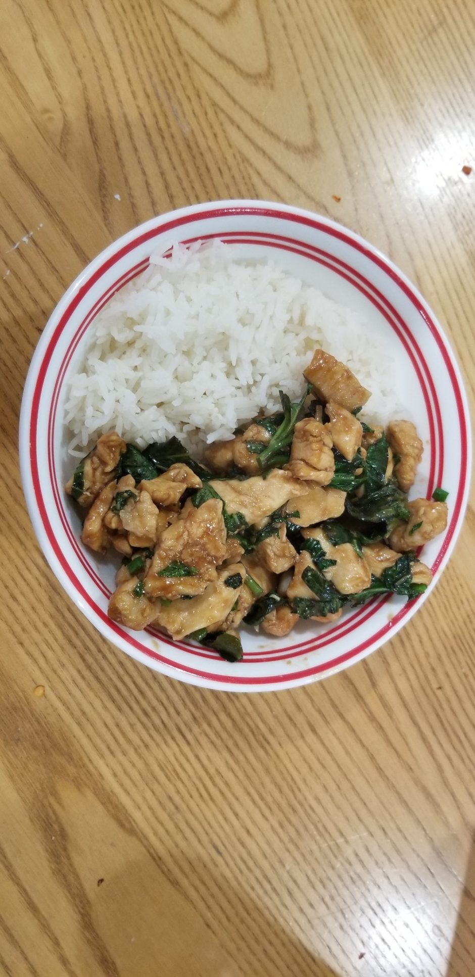 Add garlic and peppers into a mortor and pestle and crush together then put into a bowl and mix in oyster sauce, soy sauce, white and brown sugar, and fish sauce till combined. Add oil into a hot pan and then add the chicken. Stir till it starts to brown and then add in a tablespoon of the mixture from the bowl. Keep stirring till it starts to caramelize. Add in the rest of the sauce and stir till pan deglazed and a coating forms on the chicken. Add basil and green onions to the pan and stir till mixed, then remove from heat immediately and serve with rice.