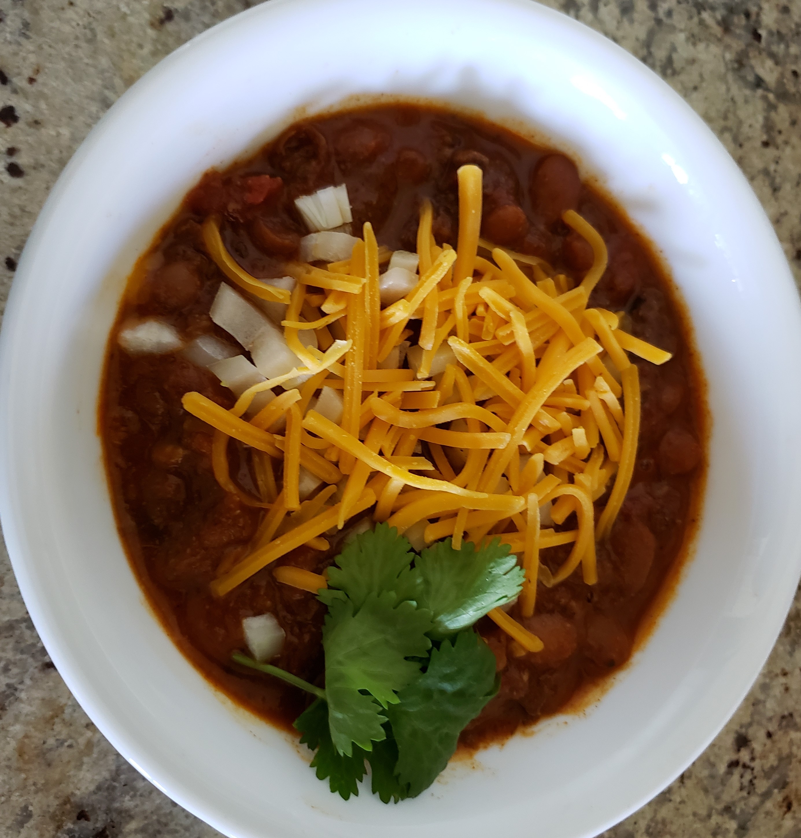 Night before, put pinto beans in bowl covered by 3″ of water. When ready to cook, set Instant Pot to sauté and add oil and Elk meat, bacon and sprinkle with 1/2 tsp of salt and 1/4 of the diced garlic. Sauté till browned. Then add in tomato sauce and paste, chili powder, cumin, oregano, basil, Worcestershire sauce, beef bullion, and red chilies and stir. Set Instant pot to pressure cook high and cook for 40 mins. When done do quick pressure release, open instant pot and stir in the rest of the ingredients and then set for pressure cook high for 15 more minutes. When timer expires do quick pressure release and enjoy.