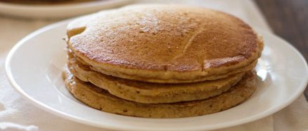 I like the nutrition that comes from less processed ingredients. So I have an inexpensive flour mill (hand operated) and some whole wheat grain that I like to use occasionally since most of the flour bought in the market is heavily processed. You get extra nutrition from the less processed flour. I use the flour in pancakes and tortillas and these pancakes came out great with a deep rich taste.